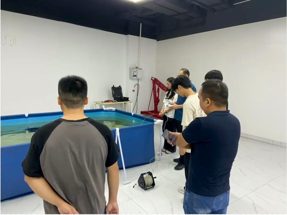 智行深远企业负责人在同学实操过程中提醒同学们,操作水下机器人需要充分考虑水下的复杂环境,如水流、障碍物等因素都会影响操作效果。在技术人员的协助下,同学们不仅掌握了基本操作技能,还尝试了模拟目标物搜索、图像采集和数据回传等更具挑战性的任务。