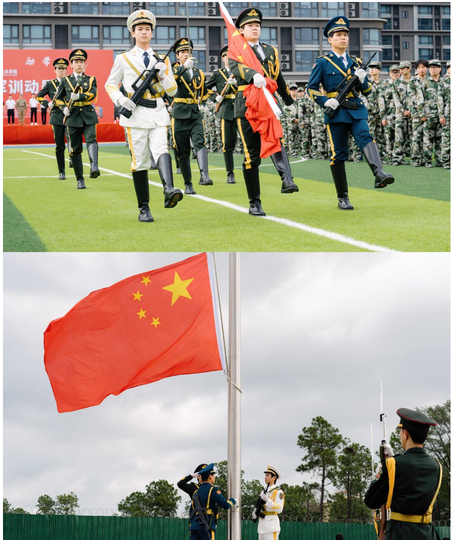 随着雄壮的国歌声响起,鲜艳的五星红旗冉冉升起,本次新生军训开训典礼在庄严而神圣的氛围中正式拉开帷幕。