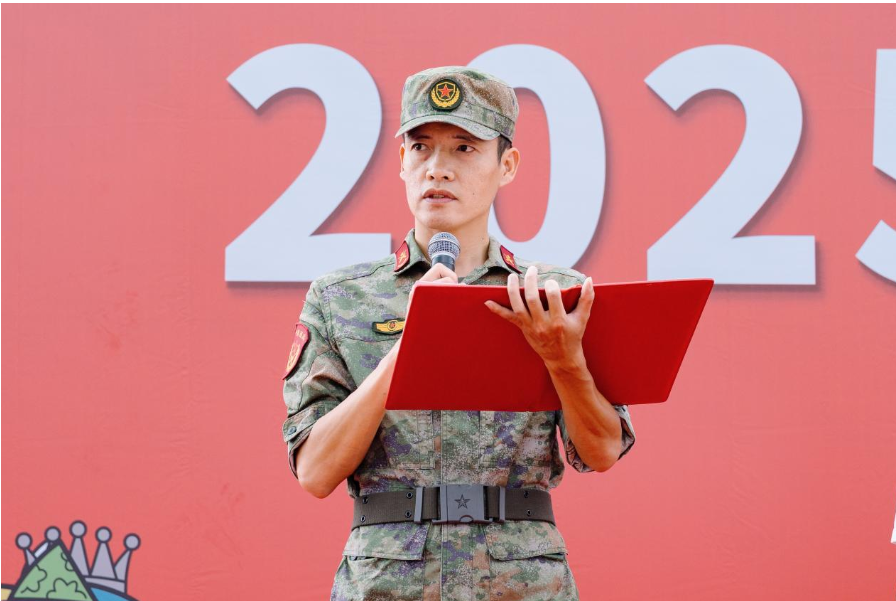 接下来,承训教官代表林天生发言。林天生教官向全体带训教官、参训2025级同学提出要求。“军训,是同学们踏入新校园、开启新生活的第一课,也是一次磨砺意志、锤炼品格的宝贵机会。在接下来的日子里,我们将与同学们同甘共苦,共同经历汗水与欢笑,挑战与成长。