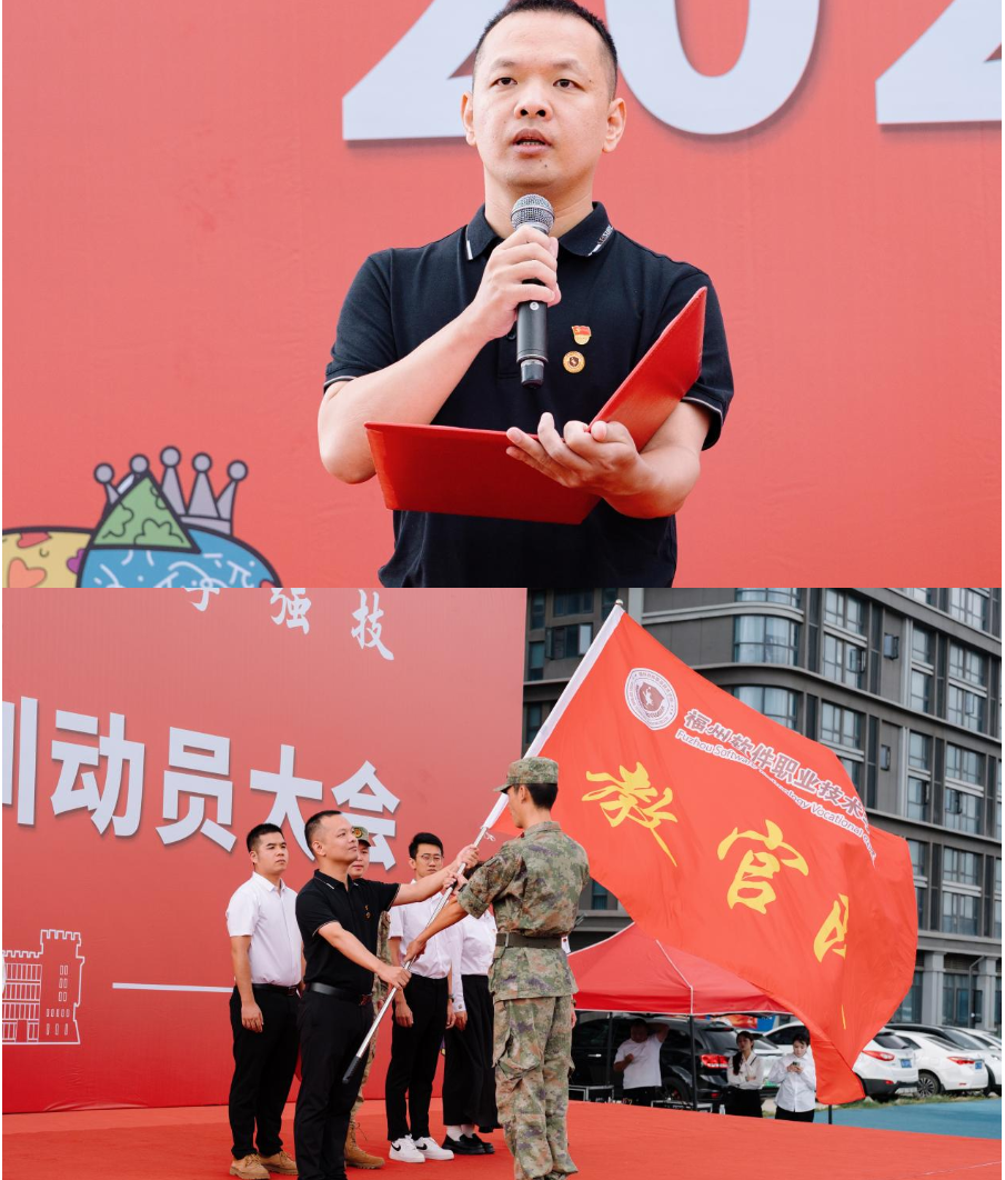 党委副书记林艺勇在动员讲话中指出,刚刚过去的中秋、国庆双节,让我们共同感受了祖国的繁荣与团圆的温暖。文岭本部的新生已顺利完成军训,接下来就是BB贝博艾弗森产教融合基地的同学们展现青春的坚韧与风采的时刻了。他强调,本次军训不仅是同学们开启老员工涯的“第一课”,更是锤炼意志、凝聚团队、强化国防观念的重要契机的关键契机,并向全体参训学员提出三点期望:一是铭记历史,立报国之志,铸就国防之魂;二是磨砺意志,凝聚团队之力,锤炼过硬本领;三是培养严实作风,关注身心健康,夯实成长根基。