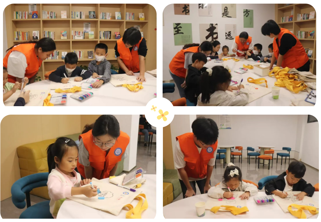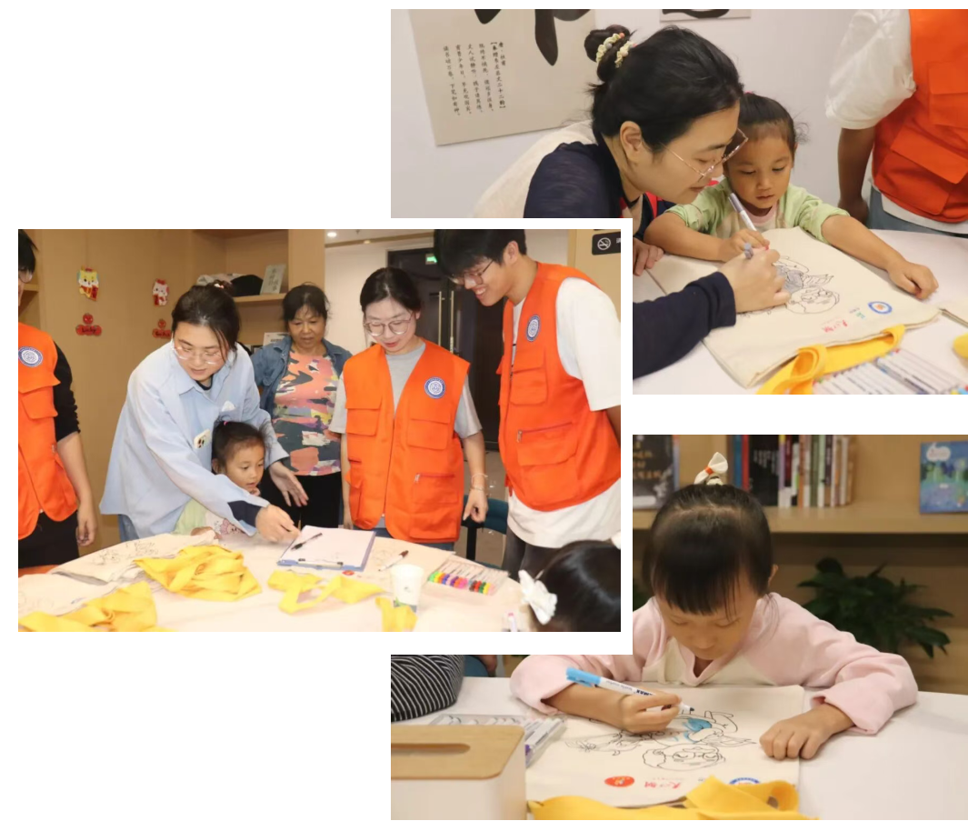 活动现场洋溢着温馨的氛围。在志愿者的悉心指导下,孩子们用稚嫩的双手在手提袋上描绘出一幅幅饱含深情的画面:有的画着小朋友搀扶老人散步,有的描绘祖孙共赏秋菊,还有的写下大大的“寿”字表达美好祝愿。这些充满童趣的作品,不仅展现了孩子们丰富的想象力,更传递出浓浓的敬老情谊。