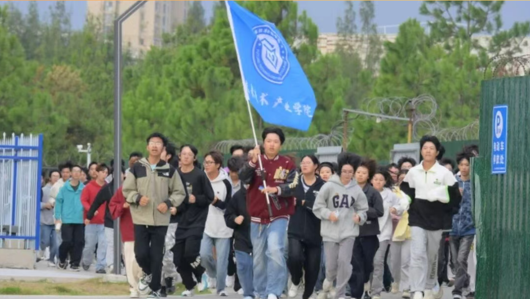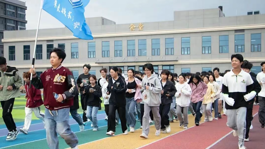 开始前,同学们依照前期安排迅速行动,在指定区域有序列队站定,很快以班级为单位组成一个个整齐挺拔的方阵,现场秩序井然。热身结束后,随着林海书记一声清脆有力的“开跑”指令,同学们从田径场升旗台正式出发,开启晨跑之旅。他们迈着矫健的步伐,沿着既定路线向前奔跑,脚步叩响清晨的宁静,彰显着蓬勃朝气。晨跑队伍先后途经教学楼、产教融合实训基地,这些承载着前沿技术梦想的建筑,静静见证着同学们·的活力身影。随后,队伍跑至校门后转向篮球场,晨光中跃动的篮球与奔跑的身影相映成趣,共同诠释着青春的多元活力。最后,同学们绕过图书馆,顺利返回田径场,完成了此次晨跑全程。