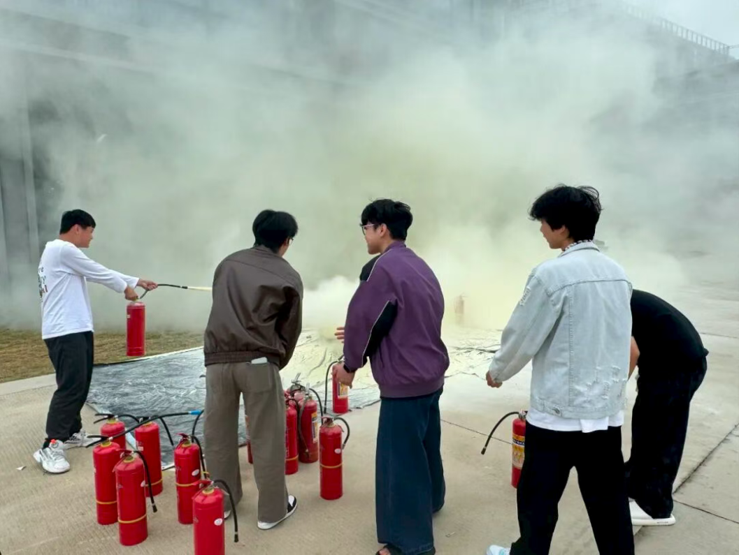 实操演练环节成为培训“重头戏”。在教员专业指导下,同学们参与灭火器实操训练,从提瓶、拔销、对准火源根部到按压喷射,每一个动作都严格按规范要领反复练习,在亲手操作中熟悉器材使用技巧、掌握应急处置流程,切实将理论知识转化为实用技能,深刻体会到“每一次规范操作都是对生命的守护”。